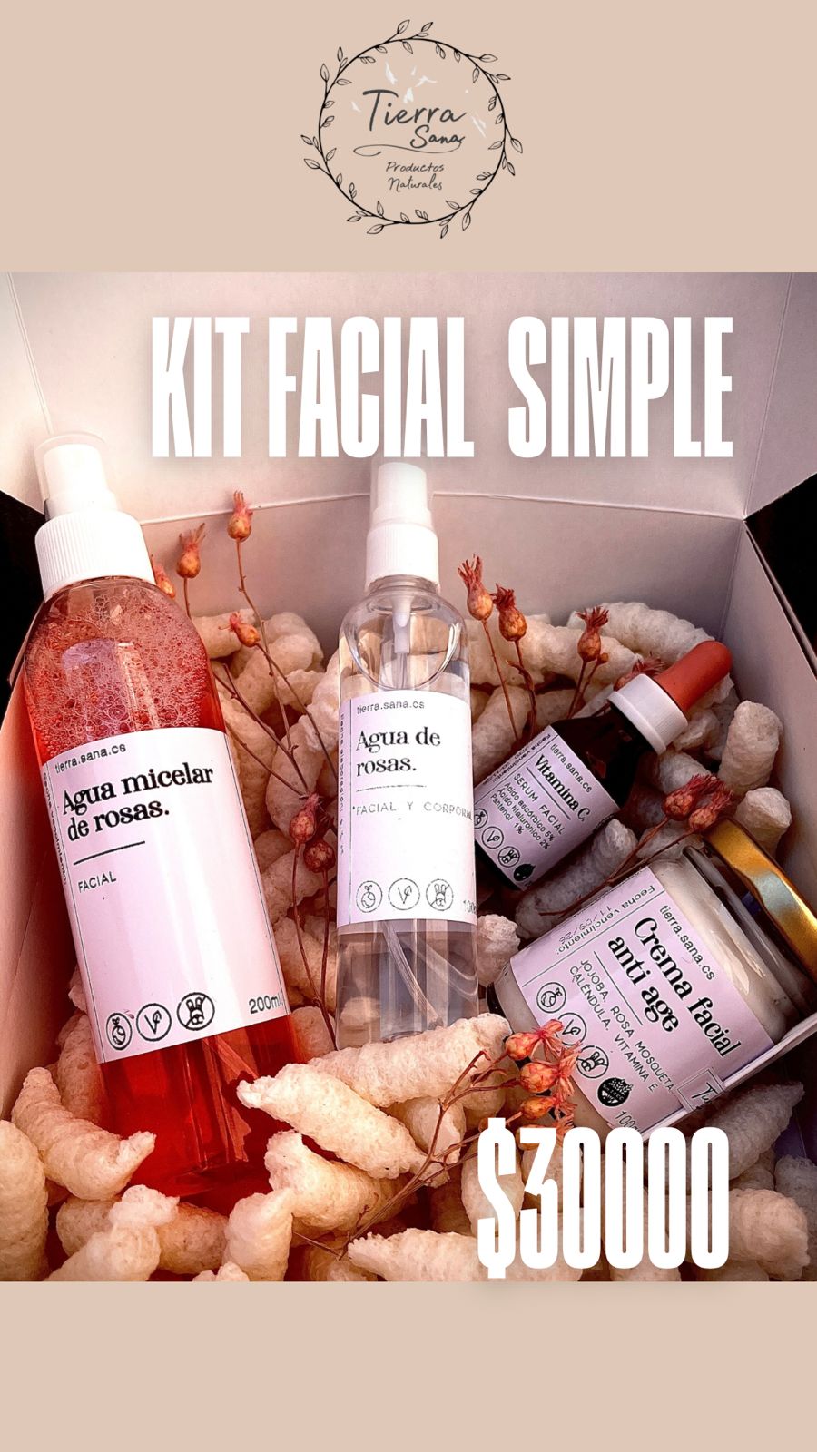Agua micelar, tonico agua de rosas, serum vitmaina c y crema facial anti age.