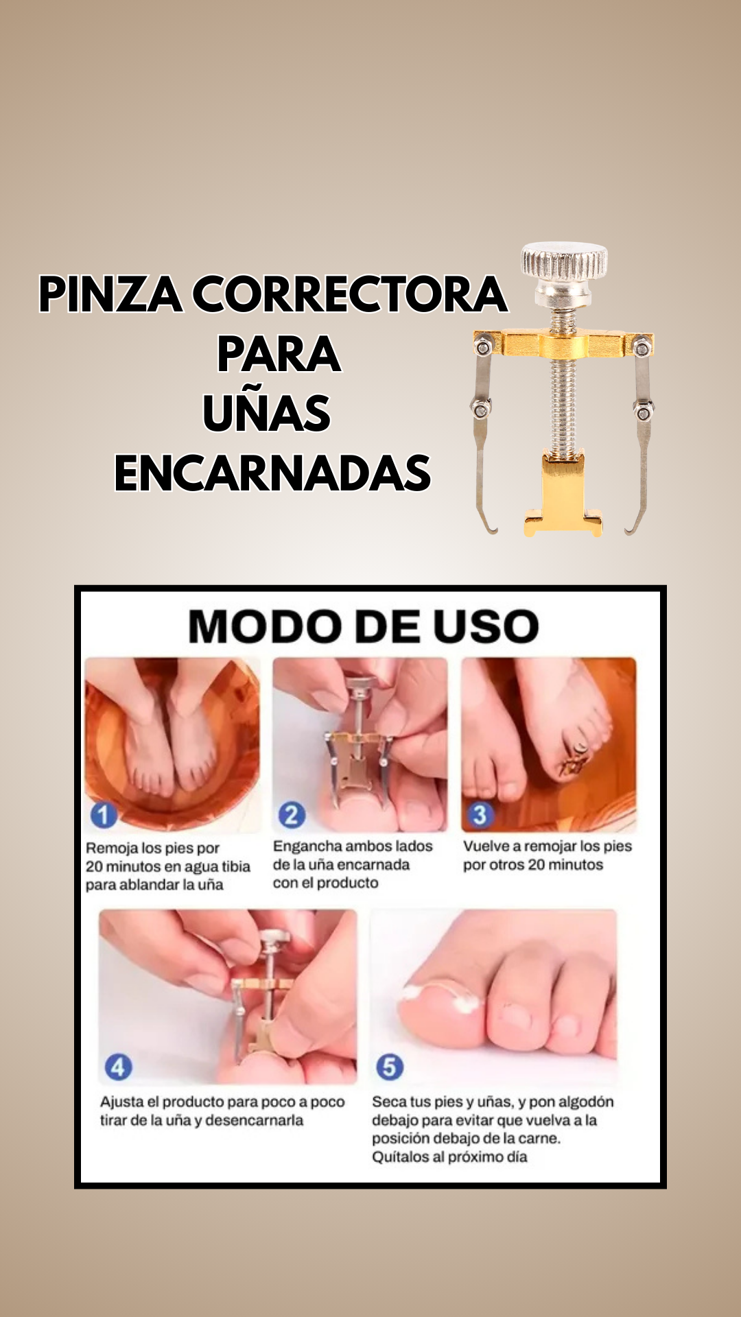 4) Ajusta el producto para poco a poco tirar de la uña y desencarnarla.